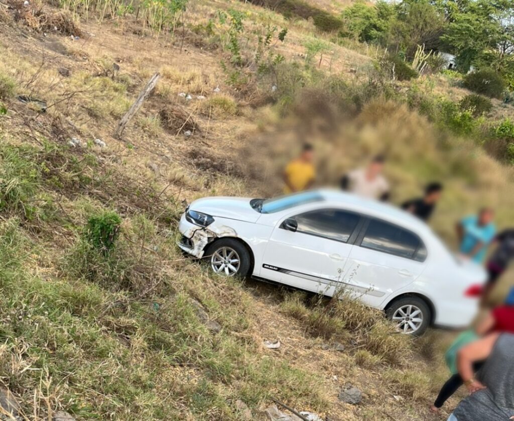 De acordo com informações de testemunhas, uma carreta tentou realizar uma ultrapassagem perigosa sobre outra no momento em que um carro de passeio seguia corretamente pela sua mão de direção. Para evitar uma colisão frontal, o motorista do automóvel precisou desviar bruscamente, saindo da pista e descendo um barranco às margens da rodovia.
