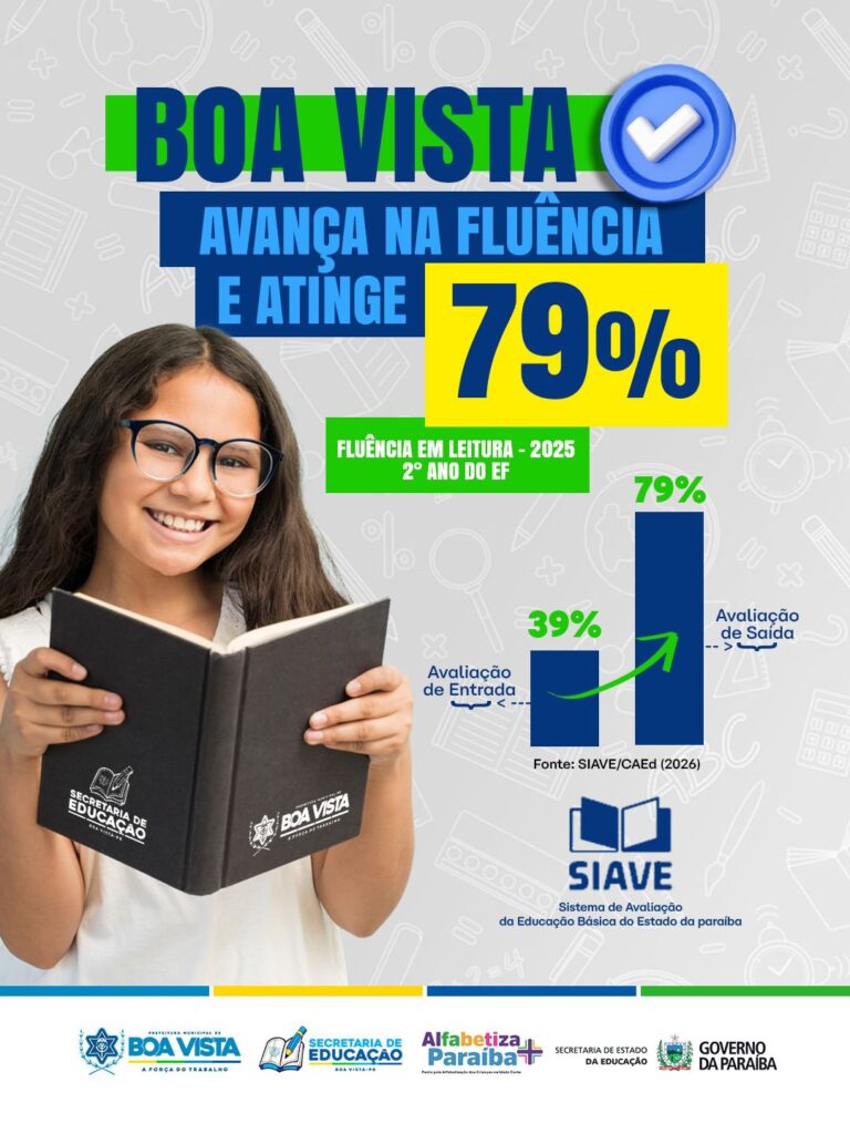 Os dados, apurados pelo Sistema de Avaliação da Educação Básica do Estado da Paraíba (SIAVE/CAEd), colocam Boa Vista em posição de destaque no cenário educacional, reafirmando o compromisso da administração municipal com uma educação pública de qualidade e com a garantia do direito à alfabetização para todas as crianças.