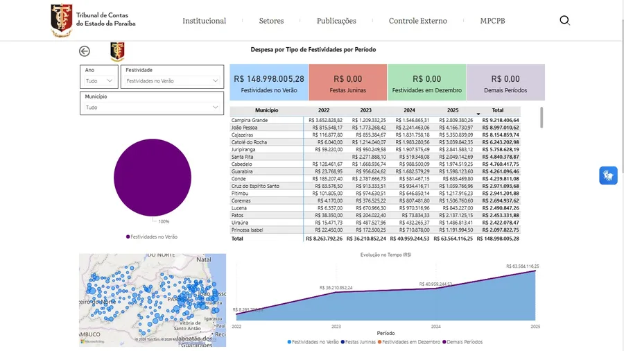 Ano passado os municípios paraibanos gastaram R$ 63 milhões com festividades no verão. O montante é quase o dobro do que foi investido em 2023, quando as prefeituras desembolsaram R$ 36 milhões.