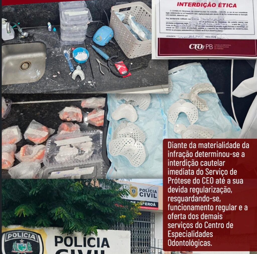 O Conselho Regional de Odontologia da Paraíba (CRO-PB) anunciou a interdição ética cautelar do serviço de prótese do Centro de Especialidades Odontológicas (CEO) do município de Taperoá, após a constatação de irregularidades durante ação de fiscalização.