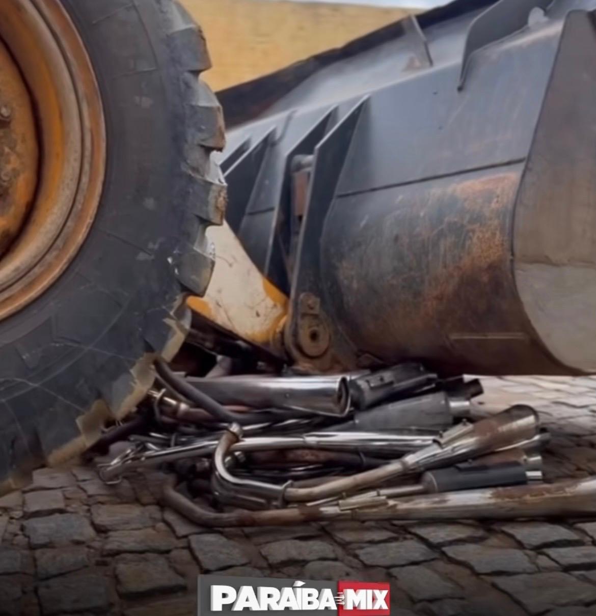 Em Soledade, gestão municipal destrói canos de motos barulhentos apreendidos em operação integrada
