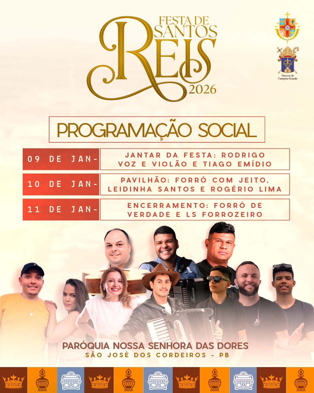 A tradicional Festa de Santos Reis 2026 já tem programação social definida e promete movimentar a cidade de São José dos Cordeiros entre os dias 9 e 11 de janeiro, reunindo música, cultura e confraternização popular.