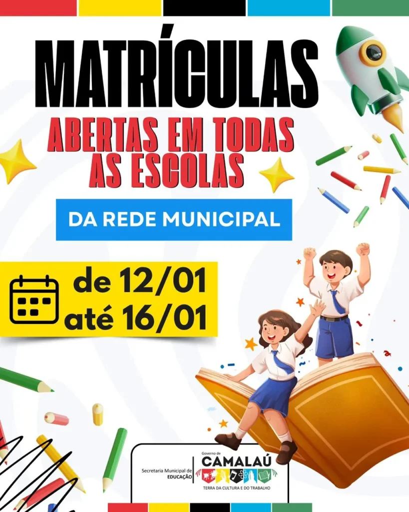 O Governo de Camalaú, por meio da Secretaria Municipal de Educação, informa à população que estão abertas as matrículas em todas as escolas da Rede Municipal de Ensino.