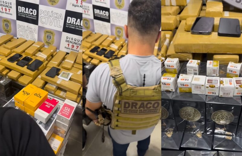 “Muita droga, eletrônicos, perfumes árabes e mounjaros”, descreveu a Polícia Civil sobre a apreensão.