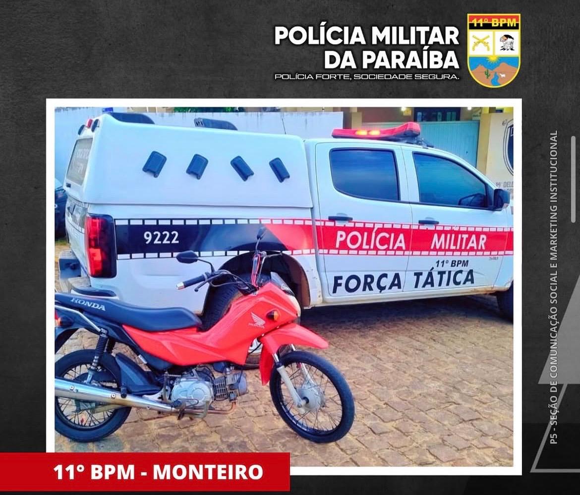 Nesta quarta-feira (15), policiais militares do 11º Batalhão realizaram a apreensão de uma motocicleta com indícios de adulteração veicular no município de Monteiro.