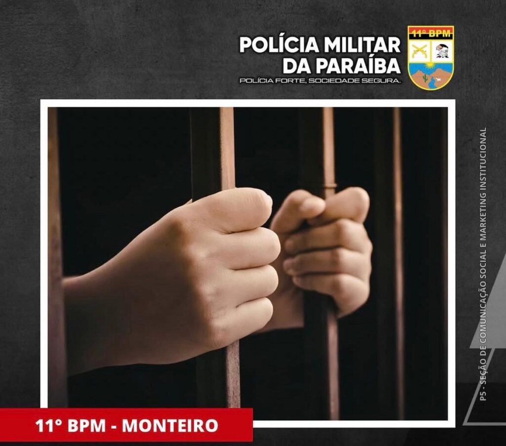 Policiais militares do 11º Batalhão prenderam, nesta terça-feira (28), um homem com mandado de prisão em aberto pelo crime de furto, durante rondas ostensivas realizadas no município de Monteiro, no Cariri paraibano.