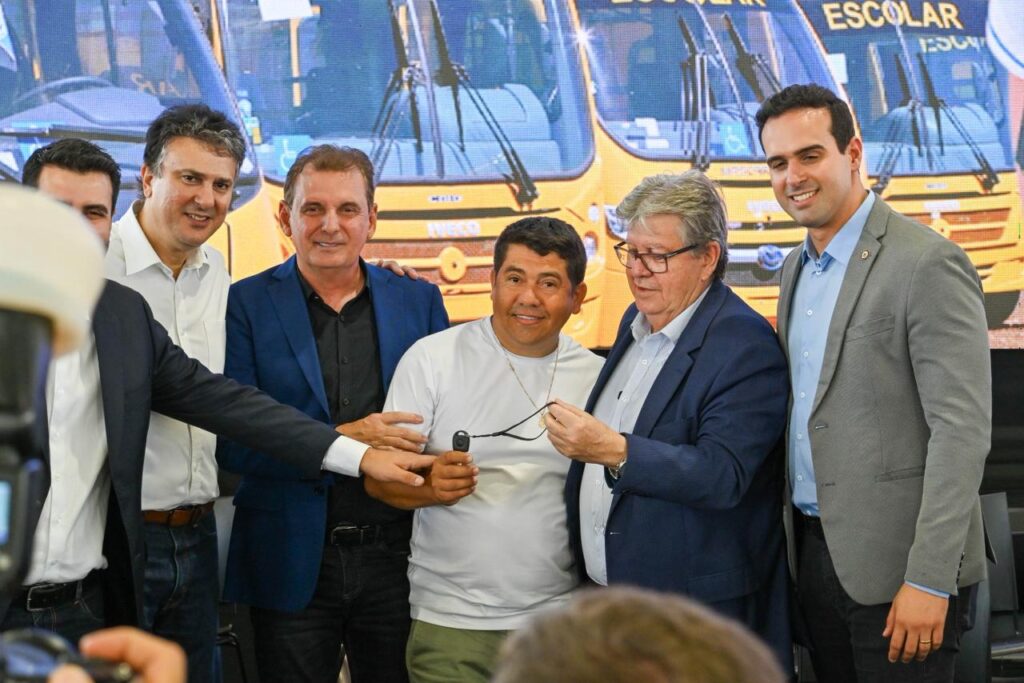 Manoel Vasconcelos recebeu a chave do novo veículo ao lado do governador João Azevêdo, do vice-governador Lucas Ribeiro, do ministro da Educação Camilo Santana, do secretário estadual de Educação Wilson Filho e do deputado estadual Chico Mendes.
