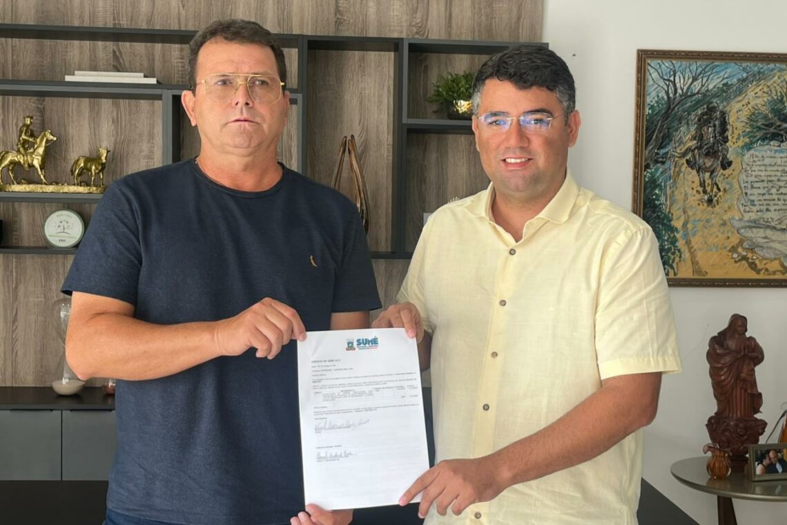 O prefeito Manezinho Lourenço assinou na última terça-feira (03), no gabinete, a ordem de serviço de abastecimento d’água para as comunidades rurais de Terra Vermelha, Riachão de Cima, Poço do Quinca, Chorão e Poço da Pedra, com investimento total de R$ 1.125.900,00 (um milhão, cento e vinte e cinco mil e novecentos reais), que será executado pela empresa Engemarc Construtora Ltda, em convênio com o Ministério da Integração e do Desenvolvimento Regional.