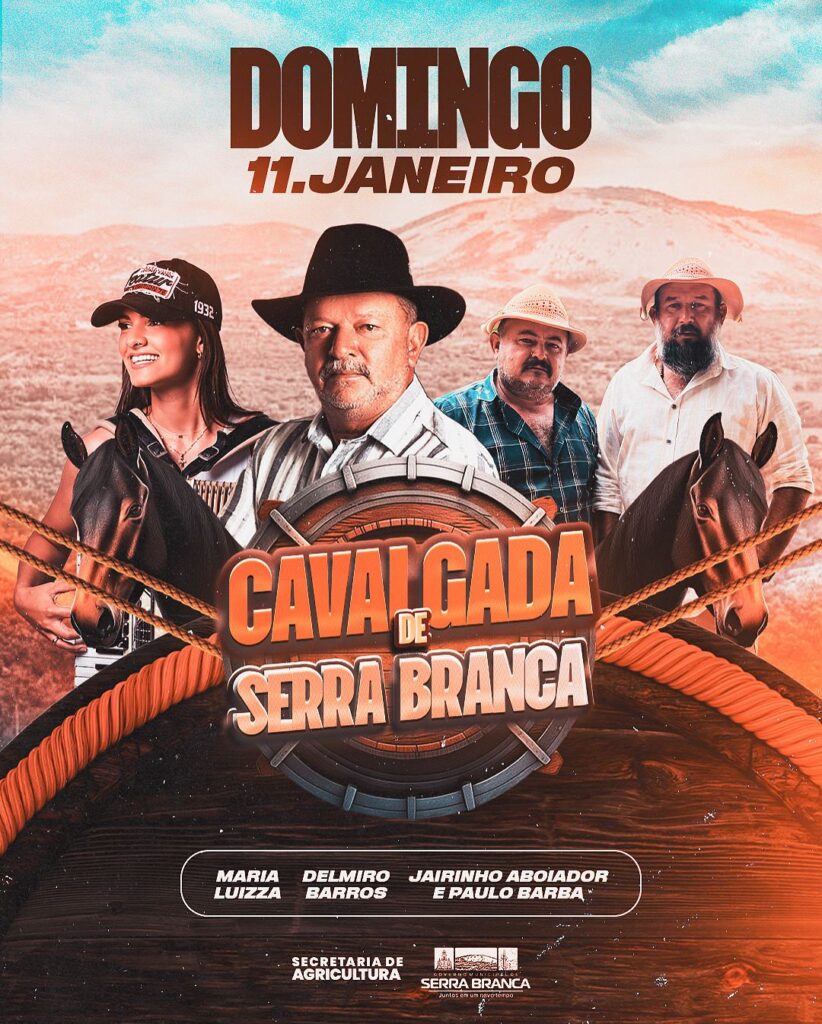 A tradicional Cavalgada de Serra Branca ganhou nova data. Inicialmente marcada para o dia 05 de outubro deste ano, a programação foi adiada e acontecerá no dia 11 de janeiro de 2026 (domingo), reunindo vaqueiros, famílias e amantes da cultura sertaneja em um dos maiores eventos do município.