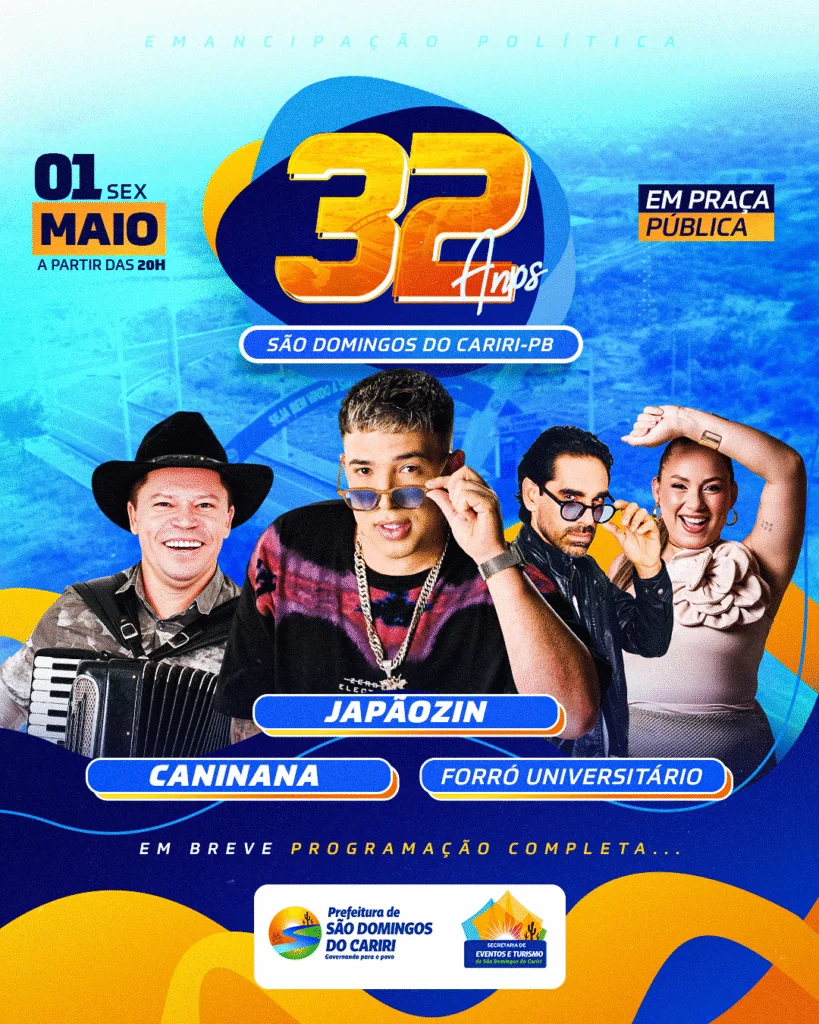 A Prefeitura de São Domingos do Cariri anunciou oficialmente as atrações musicais que irão animar a comemoração dos 32 anos de emancipação política do município, celebrados no próximo dia 1º de maio.