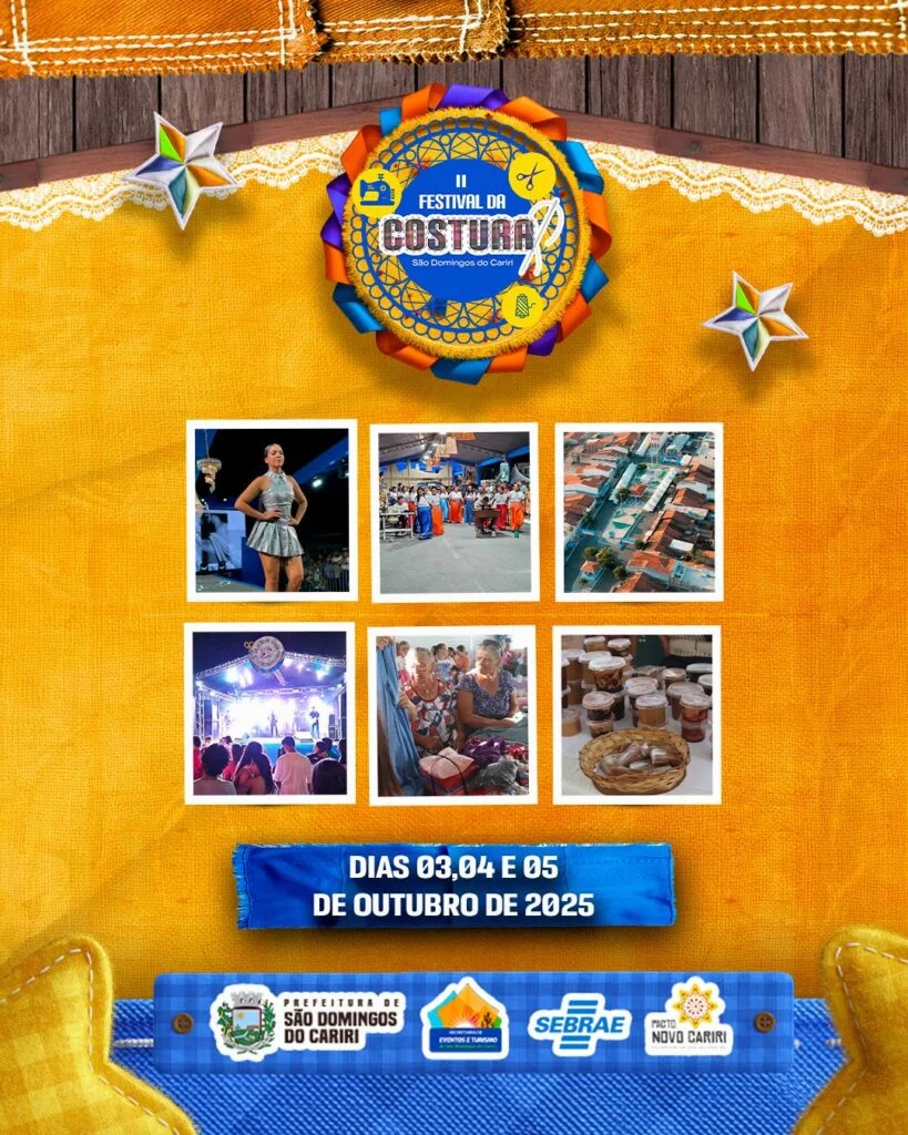 A Prefeitura Municipal de São Domingos do Cariri anunciou oficialmente as datas da segunda edição do Festival da Costura, que acontecerá nos dias 03, 04 e 05 de outubro de 2025. O evento, que em 2024 teve sua primeira edição, retorna este ano com a promessa de ser ainda maior e mais movimentado, consolidando o município como um dos principais polos de confecção do Cariri paraibano.
