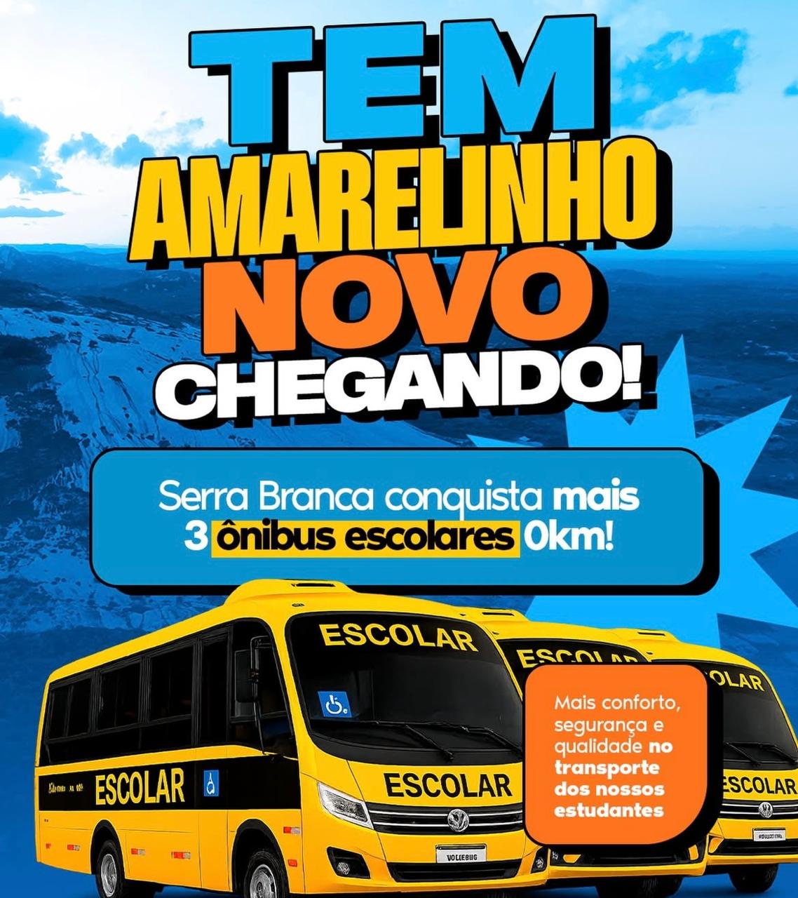 Prefeitura de Serra Branca conquista três novos ônibus escolares 0km e prefeito destaca renovação da frota