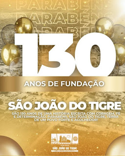 “Hoje celebramos com orgulho os 130 anos de fundação de São João do Tigre, uma terra acolhedora, de gente trabalhadora e de um coração que pulsa amor e fé. São João do Tigre é sinônimo de força, união e progresso — um município que cresce sem perder suas raízes e que segue firme escrevendo novos capítulos dessa linda trajetória”, destacou a nota da administração municipal.
