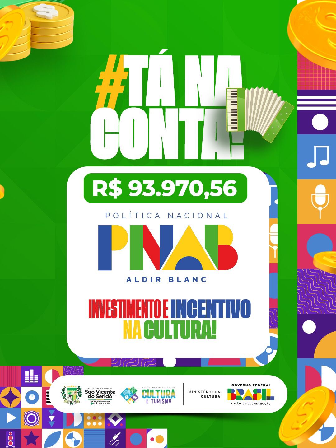 A Secretaria Municipal de Cultura de São Vicente do Seridó anunciou o recebimento de R$ 93.970,56 referentes ao segundo ciclo da Política Nacional Aldir Blanc (PNAB). O recurso, repassado pelo Ministério da Cultura, já está disponível e será destinado ao incentivo e fortalecimento das ações culturais no município.