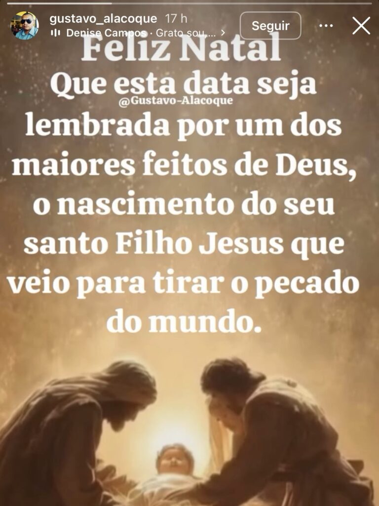 Ainda no dia de ontem, Gustavo publicou uma mensagem natalina, refletindo sobre fé e espiritualidade. Na publicação, ele finalizou com a frase: “Jesus veio para tirar o pecado do mundo”. A mensagem ganhou grande repercussão após a confirmação de sua morte violenta.